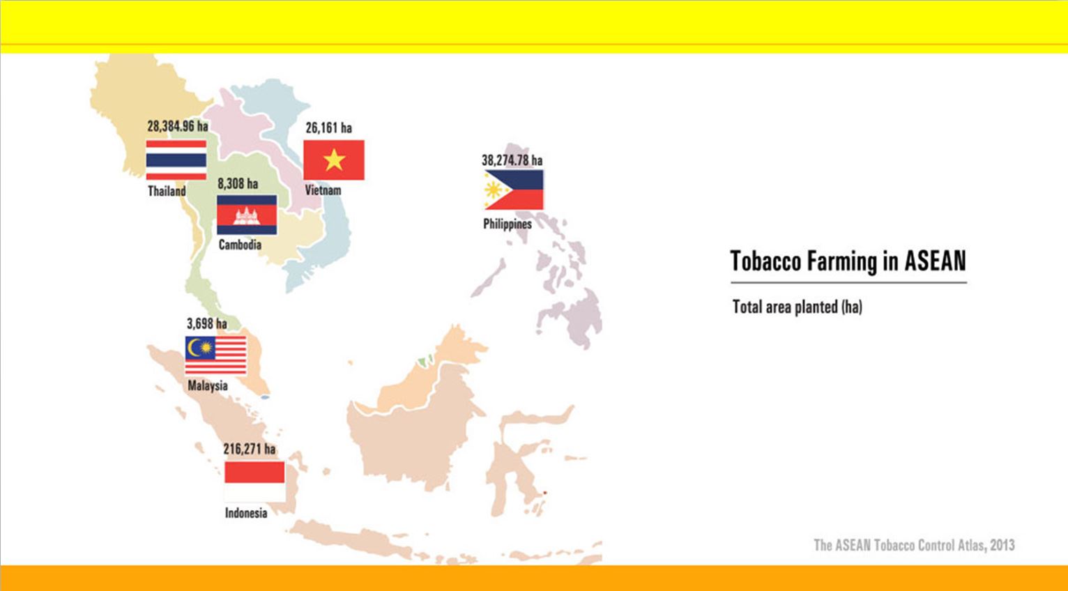 Source: Southeast Asia Tobacco Control Alliance (SEATCA) 동남아시아 국가들의 잎담배 재배 농민 수, 재배 면적, 년간 생산량(수확량)에 대해서 자세히 살펴보면 아래 표와 같다.